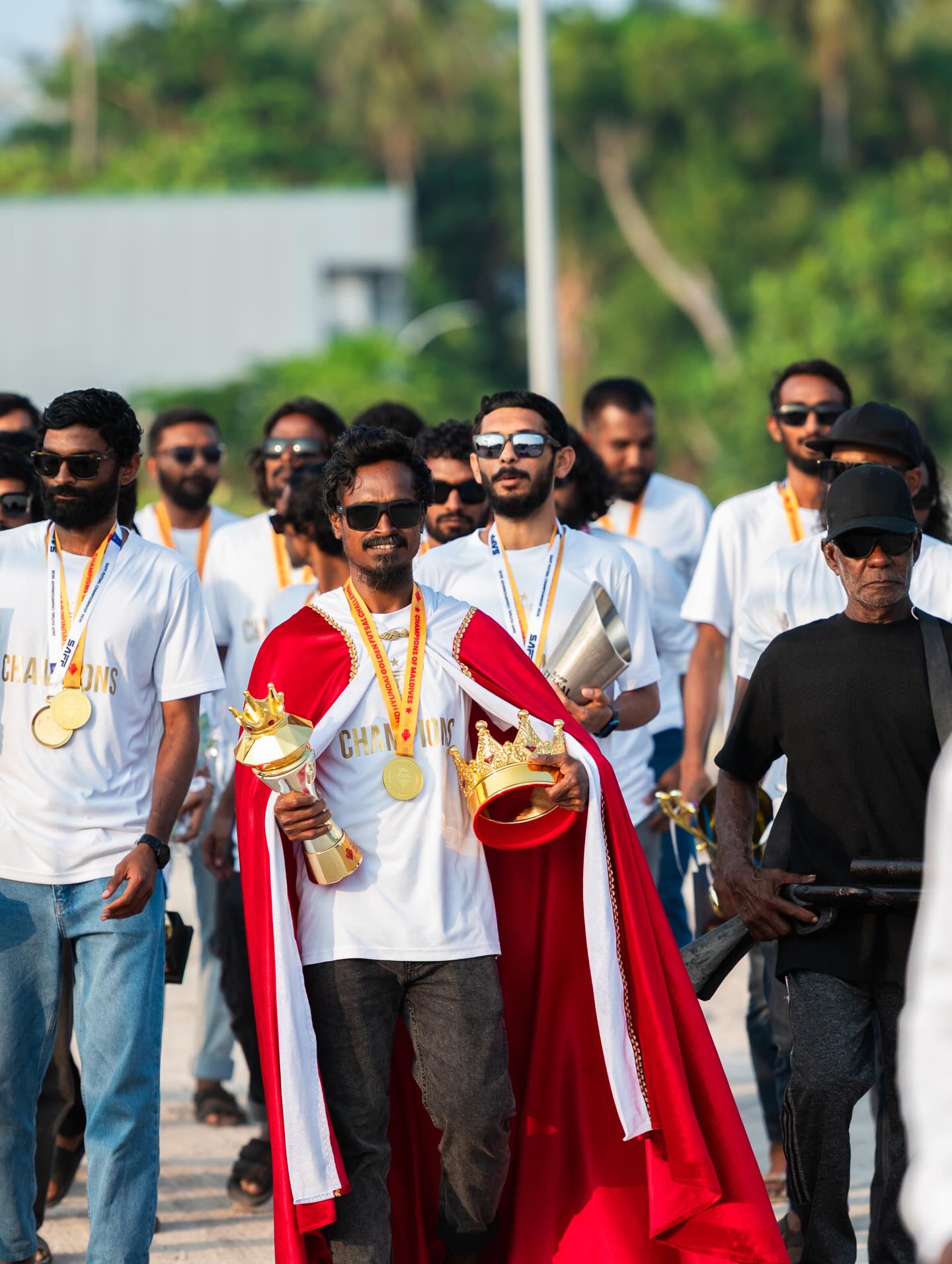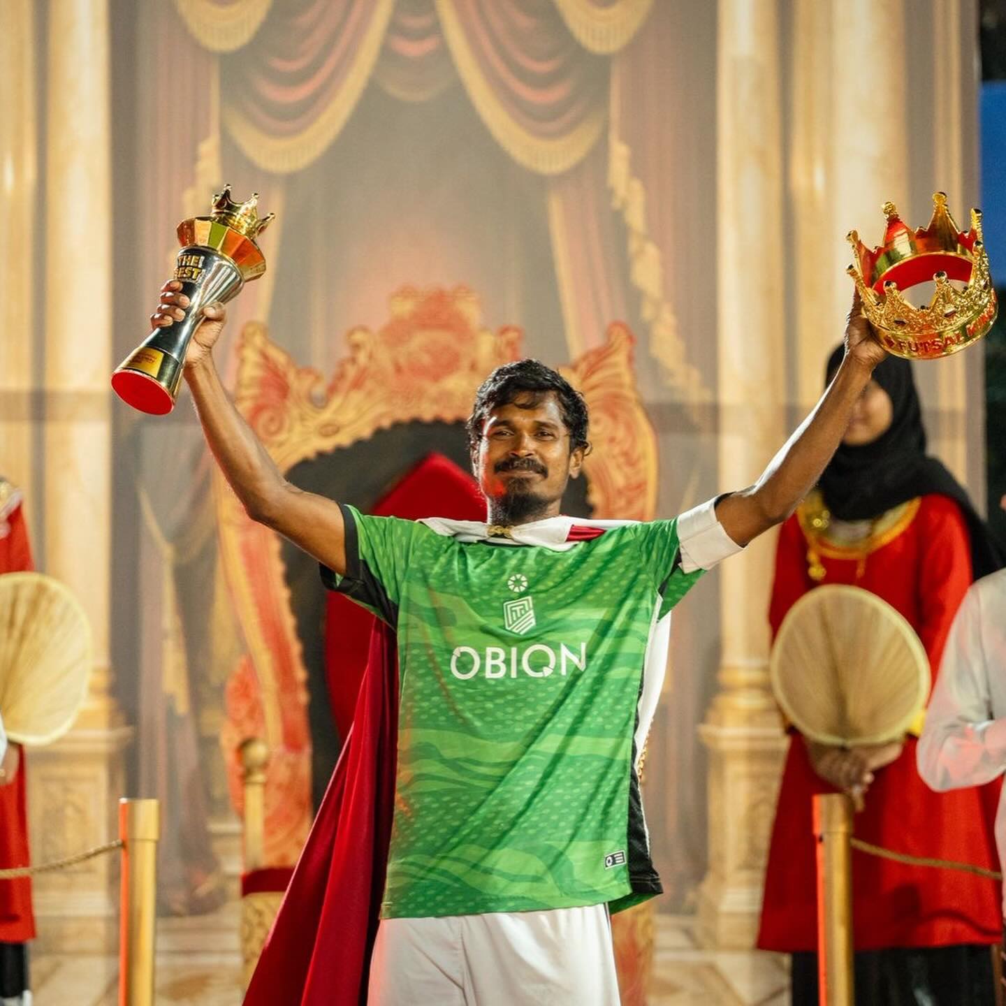 ޔާންޓެ ފުޓްސަލްގެ ކިންގުގެ ތާޖާ އެކު އުފާފާޅުކުރަނީ. ފޮޓޯ: ޓީމް ނައިވާދޫ
